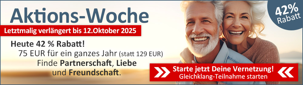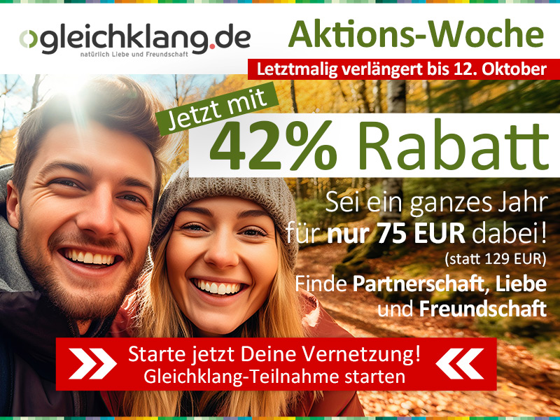 Eine Mitgliedschaft bei Gleichklang ist eine Option auf ein künftiger Partnerglück, wobei letztlich unbekannt ist, ob und wann sich die Option einlösen wird. Wir von Gleichklang tun aber alles in unseren Möglichkeiten liegende, um zu einem Eintritt der Option und dem Beginn einer neuen Liebesbeziehung beizutragen.